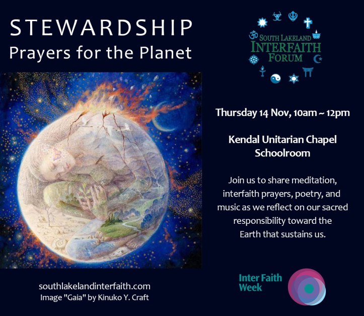 Join us to share meditation, interfaith prayers, poetry, and music as we reflect on our sacred responsibility toward the Earth that sustains us.